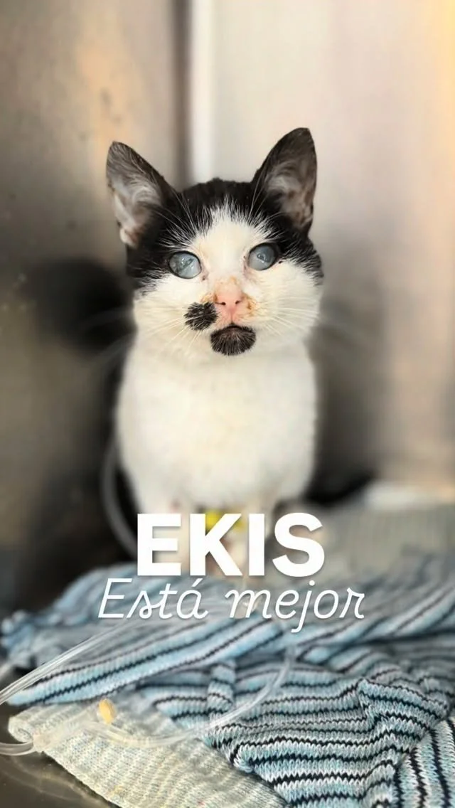 Copito fue rescatado junto a Sacha, Sara, Samu y otros cuatro gatitos. Todavía tiene miedo, aunque va avanzando poco a poco. Necesita una casa de acogida donde, con paciencia y cariño, le ayuden a superar sus miedos y a prepararse para llegar a su hogar definitivo.