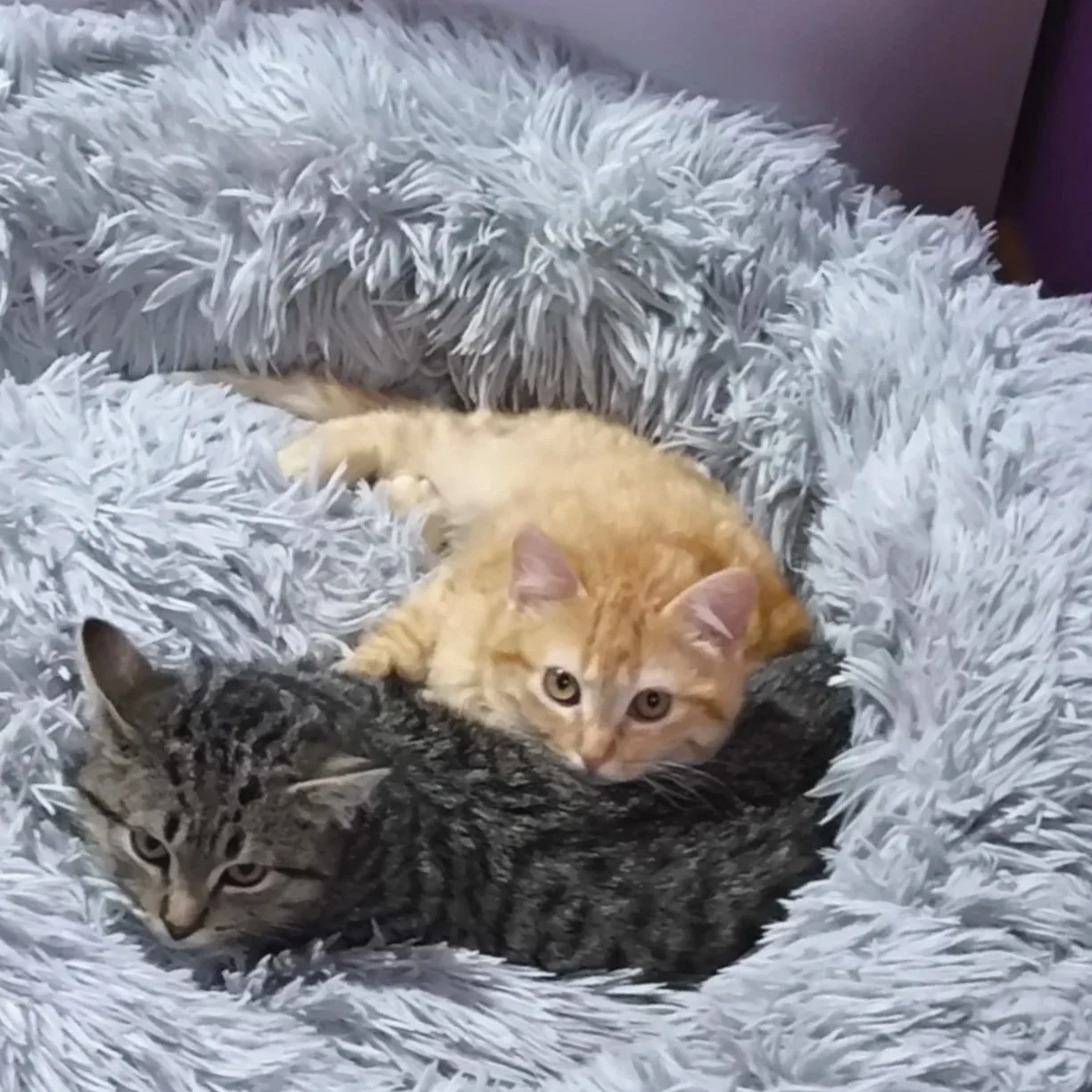 Son cariñosos, muy juguetones, sociables y están siempre juntos: comparten juegos, siestas y miradas cómplices que derriten el corazón.